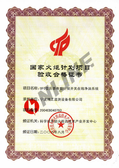 “OFO變壓器有載分接開關在線凈油系統”被列為國家火炬計劃項目