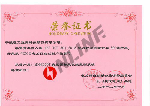 MDD3000T變壓器智能在線監(jiān)測系統(tǒng),獲2012年電力行業(yè)創(chuàng)新產品獎